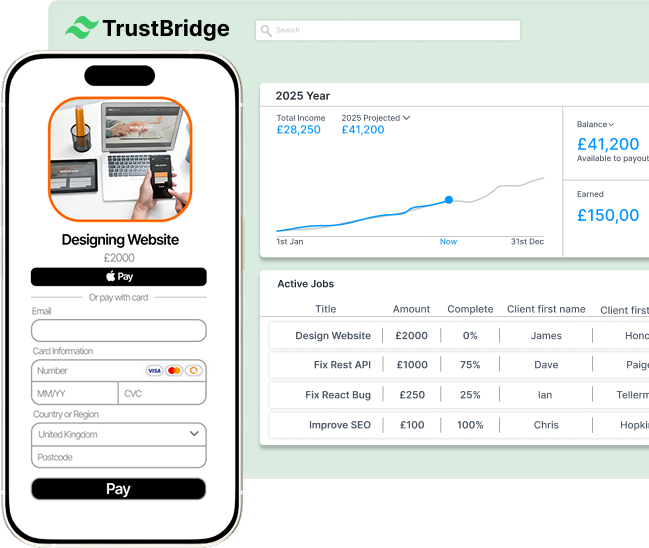 TrustBridge sits between you and your client, ensuring the money is there before the tools come out.